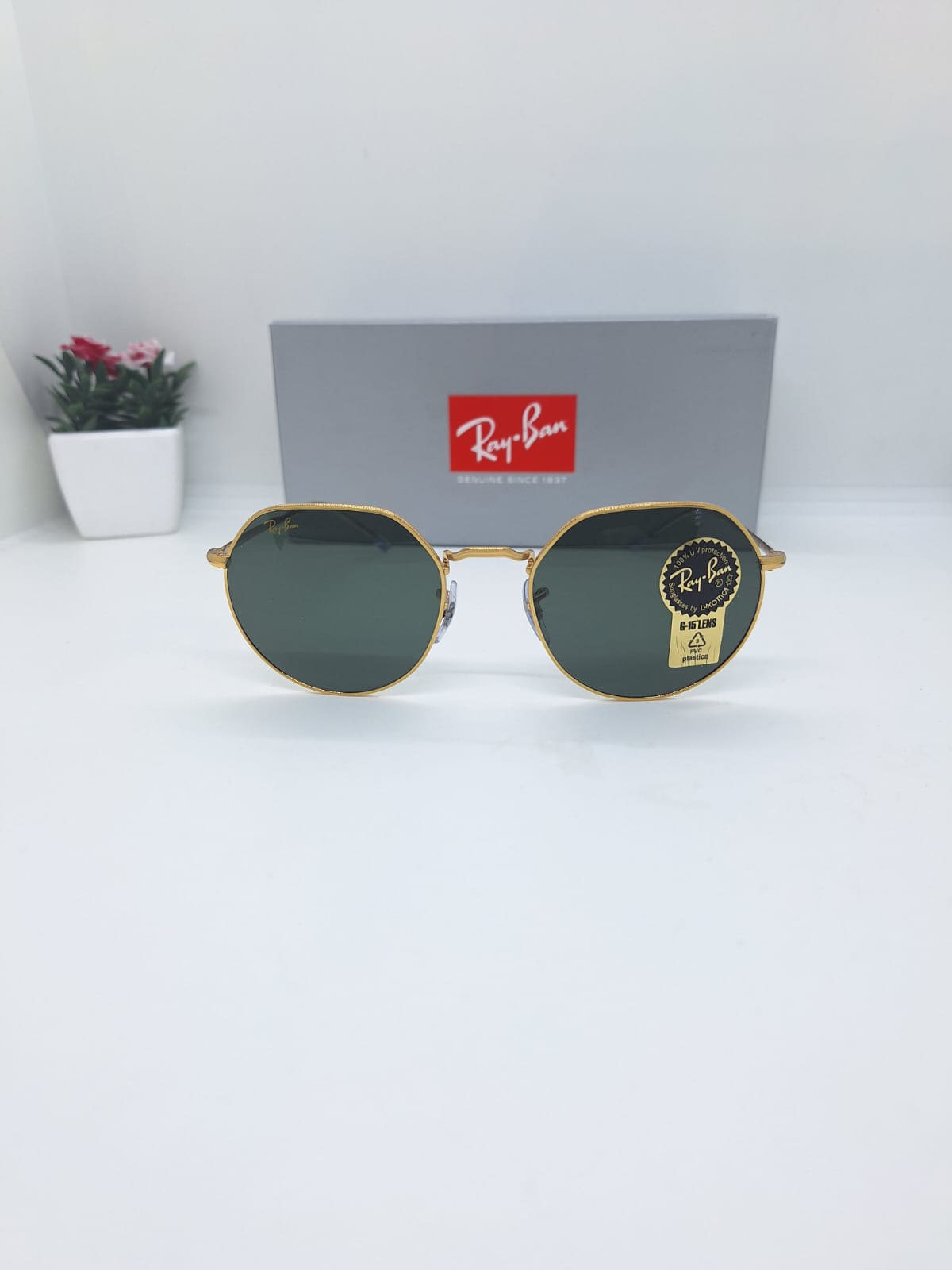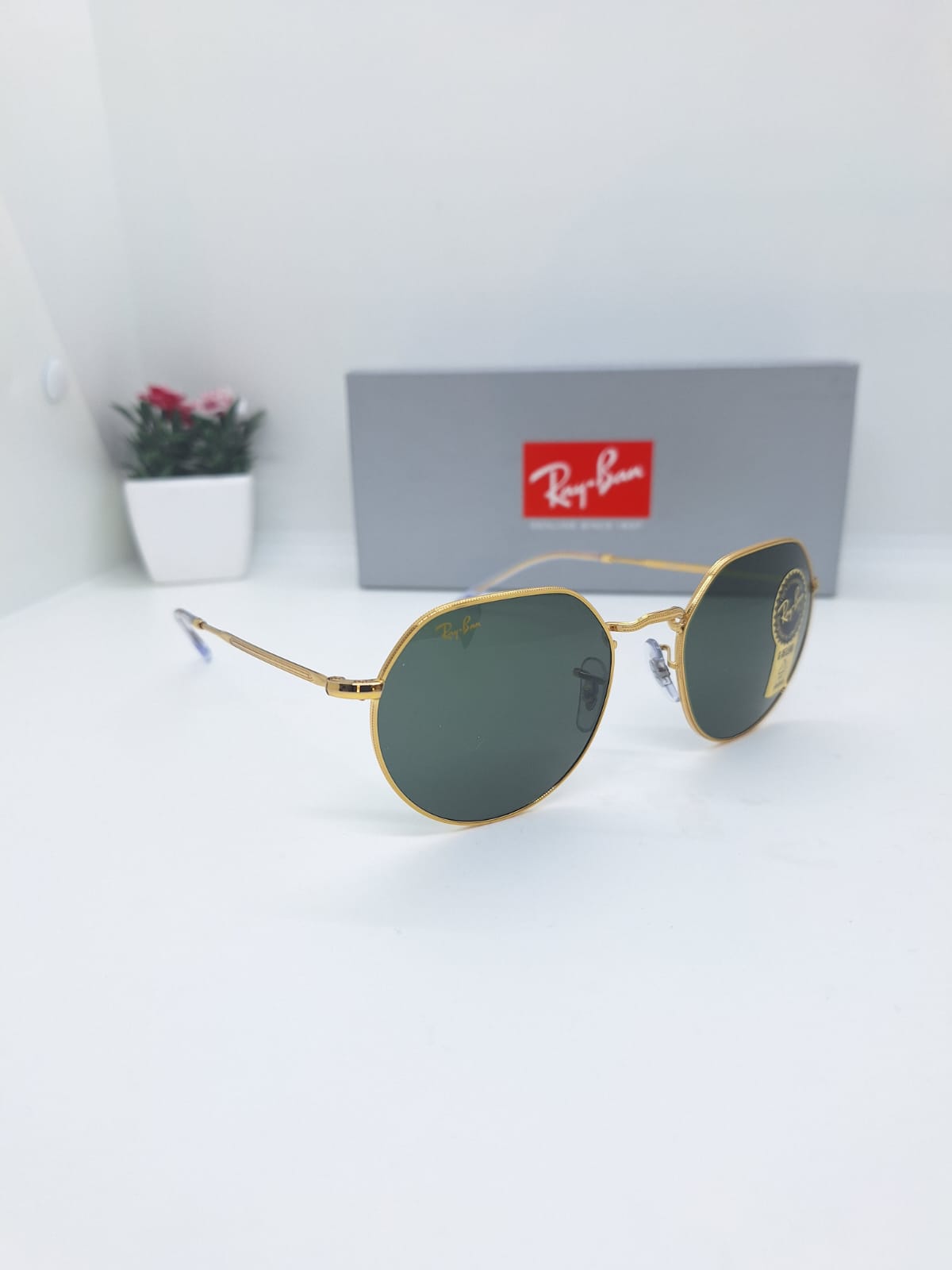 İşte Ray-Ban RB 3565 “Jack” 9196/31 modelinin görselleri — altın metal çerçeveli, yuvarlak formda G-15 yeşil (gri-yeşil) lensli şık bir güneş gözlüğü. Şimdi bu modelin teknik detayları ve stil analizine geçelim: